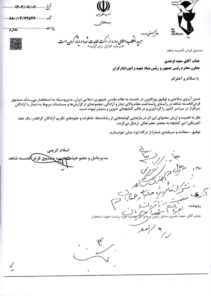 معاون رئیس جمهور و رئیس بنیاد شهید و امور ایثارگران از مدیرعامل و رئیس هیئت مدیره صندوق قرضالحسنه شاهد قدردانی کرد؛